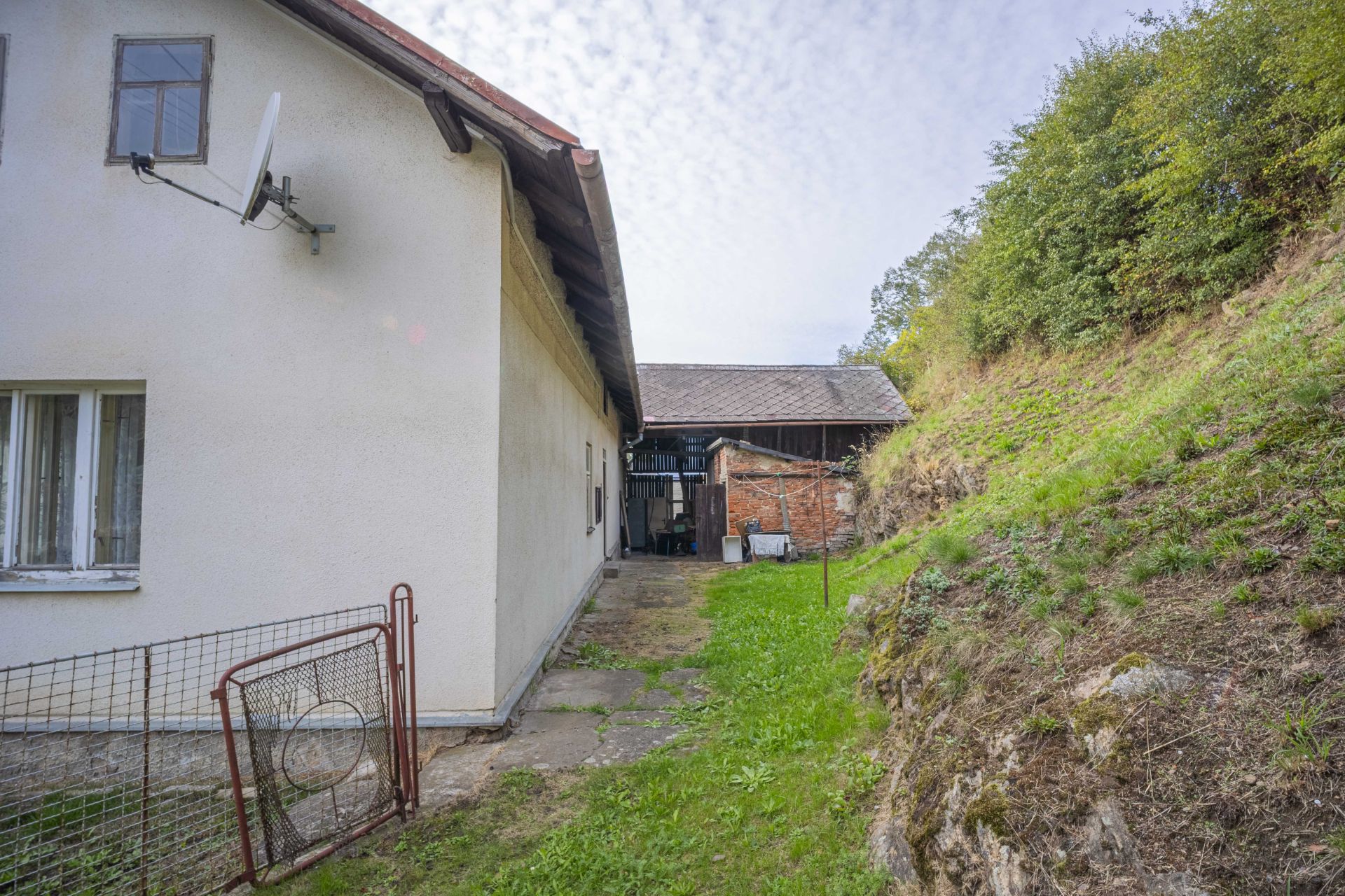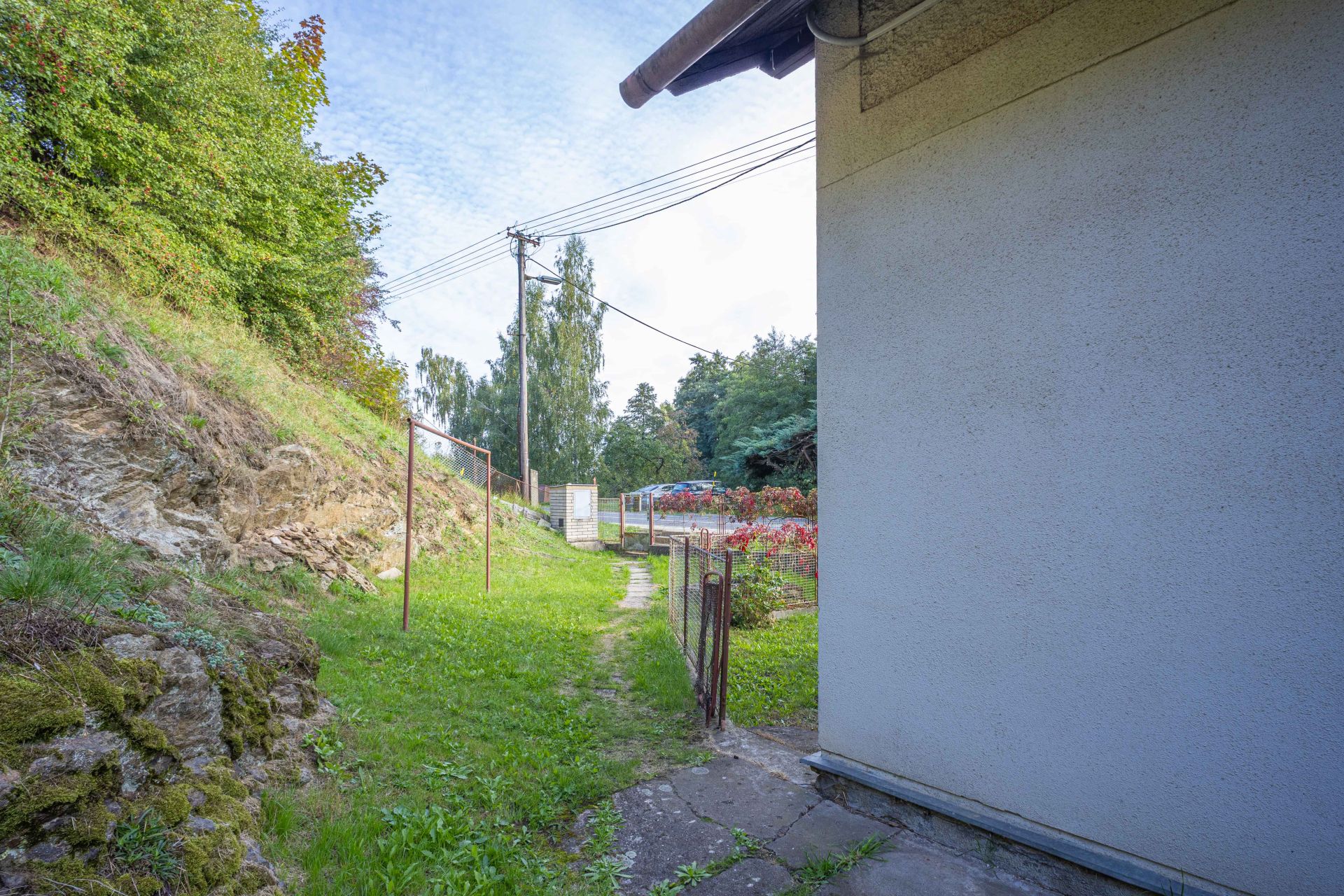 Za domem se rozprostírá pozemek se skálou, která vytváří dokonalé soukromí. Může být ideální pro vášnivé skalničkáře.