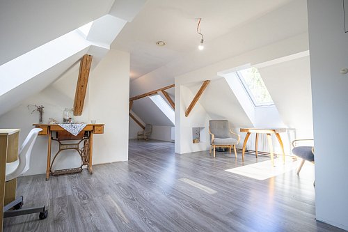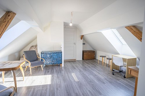 Dům prošel dvěma etapami rekonstrukce (před 10 a 6 lety) – včetně nových rozvodů inženýrských sítí, střechy, topení a interiéru. Nabízí prostorné obytné podkroví se soc. zařízením. V přízemí je pak dětský pokoj, moderní nová kuchyň, světlý obývací pokoj s francouzským oknem, odkud si užijete propojení se zahradou. V přízemí je také prostorná a světlá koupelna a samostatné WC.