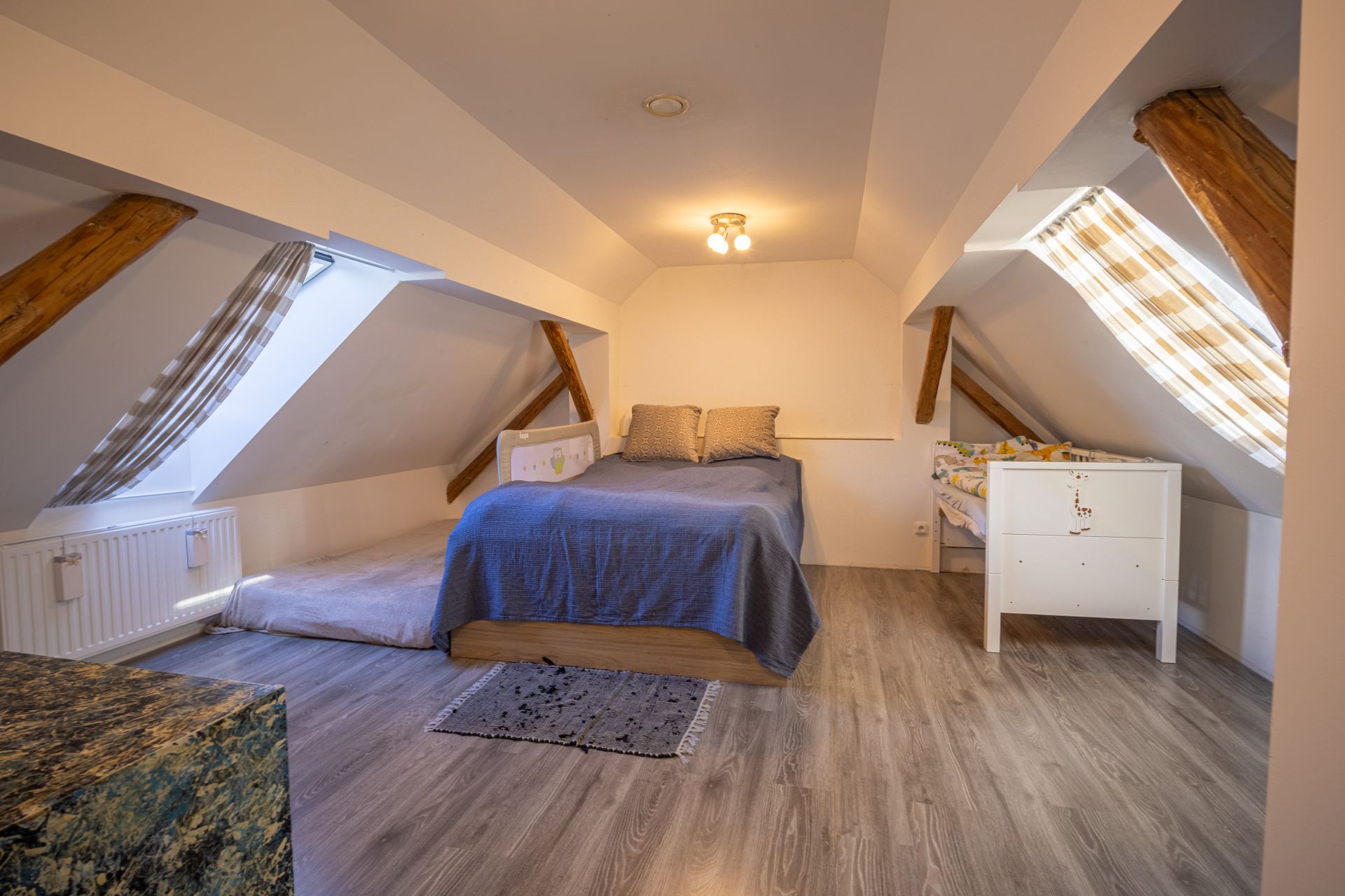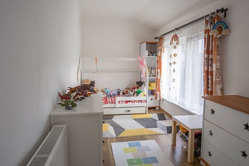 Dům prošel dvěma etapami rekonstrukce (před 10 a 6 lety) – včetně nových rozvodů inženýrských sítí, střechy, topení a interiéru. Nabízí prostorné obytné podkroví se soc. zařízením. V přízemí je pak dětský pokoj, moderní nová kuchyň, světlý obývací pokoj s francouzským oknem, odkud si užijete propojení se zahradou. V přízemí je také prostorná a světlá koupelna a samostatné WC.