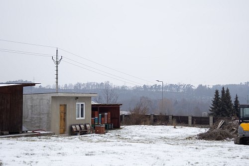 Pozemek se nachází na klidném okraji zástavby a přímo za ním se rozprostírají lesy, pole a louky.